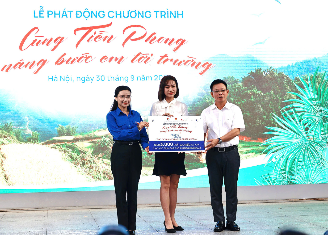 - Công ty TNHH một thành viên PACIFIC CROSS Việt Nam trao tặng 3.000 suất bảo hiểm tai nạn cá nhân cho học sinh vùng cao. Dịp này, qua báo Tiền Phong, các doanh nghiệp cũng như cán bộ công nhân viên báo tặng gần 14.000 suất bảo hiểm tai nạn cá nhân trị giá gần 300 triệu đồng để trao tặng cho học sinh các trường miền núi.