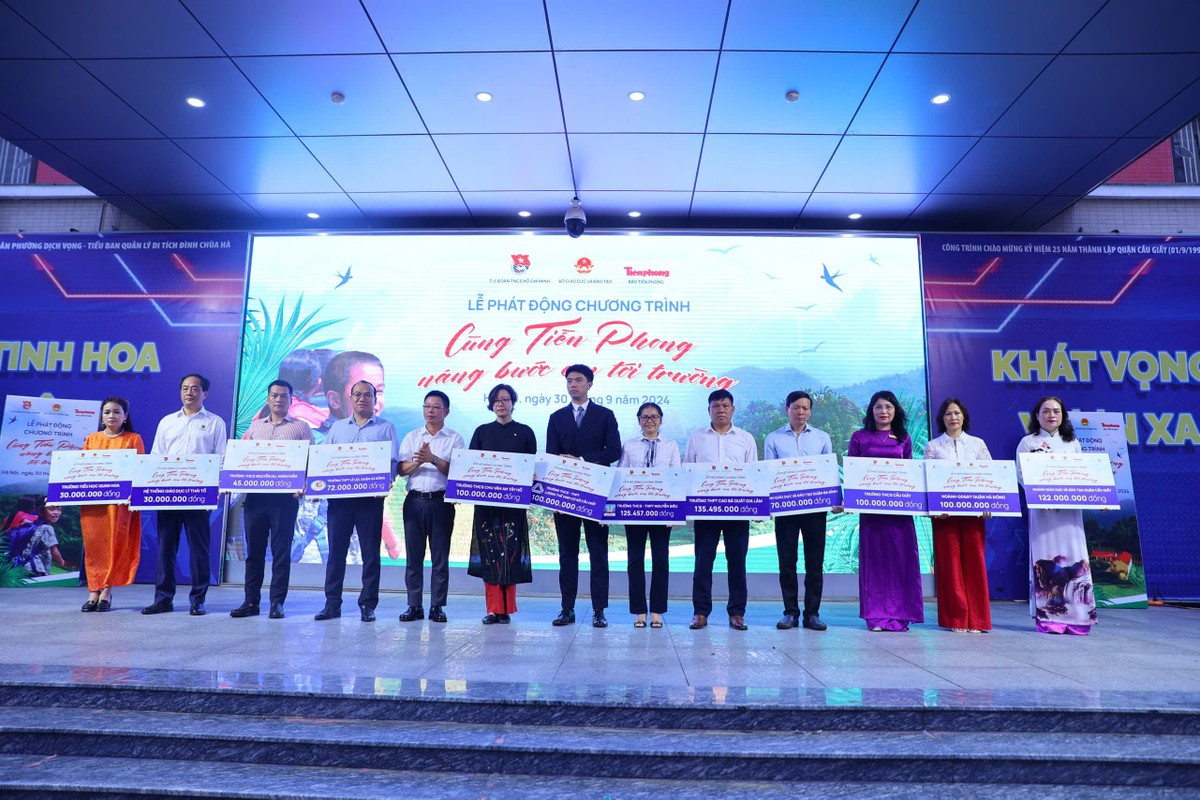Từ đề nghị của Bộ GD&ĐT, được sự chỉ đạo của T.Ư Đoàn, báo Tiền Phong phối hợp cùng Trường THCS Cầu Giấy, quận Cầu Giấy, Hà Nội tổ chức lễ phát động Chương trình Cùng Tiền Phong nâng bước em tới trường vào sáng nay 30/9.