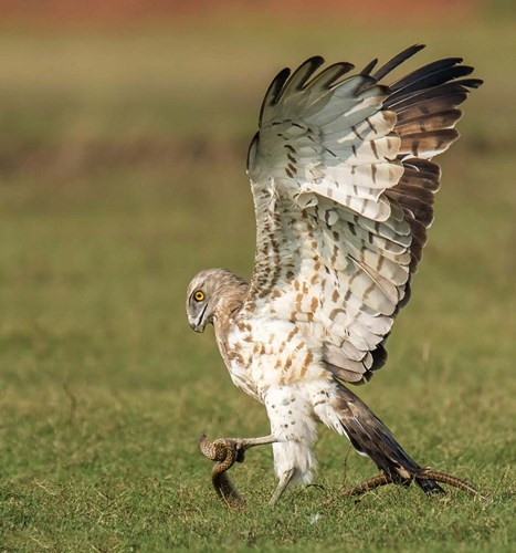 Theo nhiếp ảnh gia Druvadeep Kusumaharan, con đại bàng trong ảnh là một con đại bàng trẻ. Đây là những lần săn mồi độc lập đầu tiên sau khi rời tổ. Do còn non kinh nghiệm, con đại bàng bị rắn độc đánh phủ đầu, liên tục mổ vào mỏ, vào mặt.