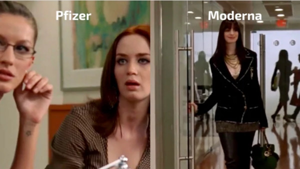 Cư dân mạng chế ảnh hài hước về cuộc đua giữa Pfizer và Moderna. Ảnh: Injesters.