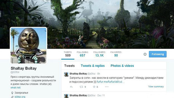 Tháng 11 vừa qua, Anonymous International công bố bức thư từ một chiến binh Nga ở miền Đông Ukraine cho rằng, người dân địa phương không ủng hộ lực lượng ly khai. Trang web của Anonymous International - sử dụng hình ảnh từ cuốn tiểu thuyết "Through the Looking Glass" (Nhìn qua gương soi) của nhà văn Anh Lewis Carroll - hiện đã bị chặn ở Nga.