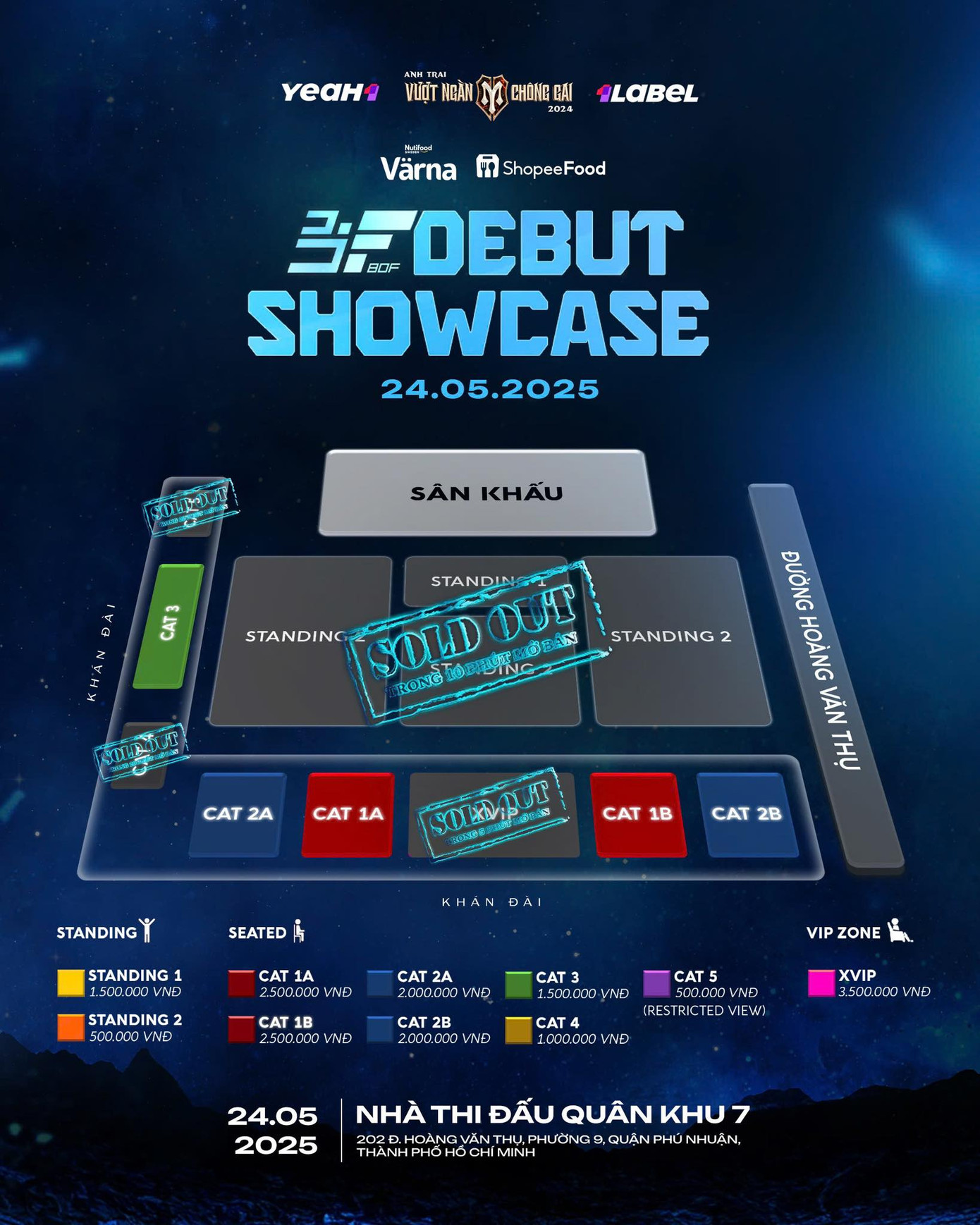 Dù BTC chưa cung cấp con số cụ thể về số lượng vé bán ra của B.O.F Debut Showcase, nhưng Nhà thi đấu Quân Khu 7 (TP.HCM) có sức chứa ước tính khoảng 5.000 khán giả, cho thấy sức hút của 5 thành viên gồm BB Trần, S.T Sơn Thạch, Jun Phạm, Bùi Công Nam, Kay Trần.