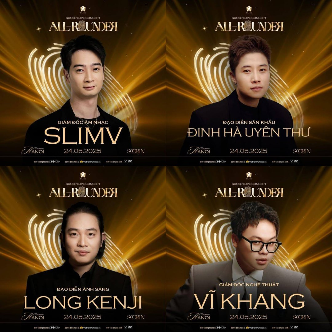 Vì SOOBIN LIVE CONCERT: ALL ROUNDER sở hữu một dàn ê-kíp đáng mơ ước ở thời điểm hiện tại, với sự góp mặt của Giám đốc âm nhạc Slim V, Đạo diễn sân khấu Đinh Hà Uyên Thư, “thần đèn” Long Kenji, Vĩ Khang - Giám đốc Nghệ thuật của Anh Trai Vượt Ngàn Chông Gai… hứa hẹn sẽ mang đến 2 bữa tiệc âm nhạc mãn nhãn.