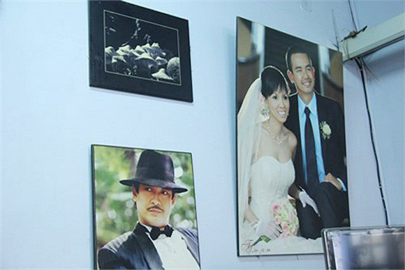 Con trai ông đã lập gia đình. (Ảnh cưới của con trai Chánh Tín treo trong căn nhà ông đang ở)