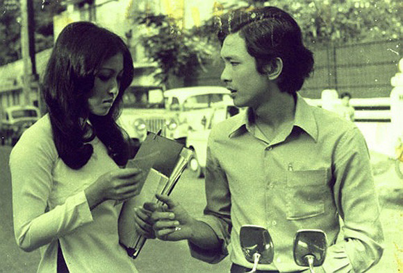 Khi học đại học, anh đã gặp gỡ và yêu cô sinh viên cùng trường cũng rất đam mê ca hát là Bích Trâm. Ảnh chụp Chánh Tín và Bích Trâm tại khuôn viên trường Luật