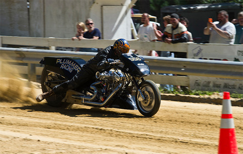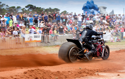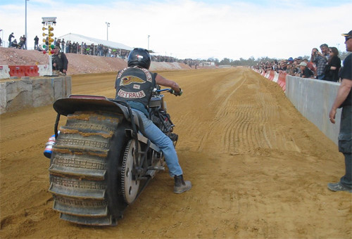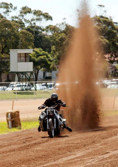 Những chiếc môtô lắp động cơ V8 có thể đạt tốc độ tối đa 170 km/h lao vọt đi, phía sau xe là chùm đất cát như đuôi sao chổi.