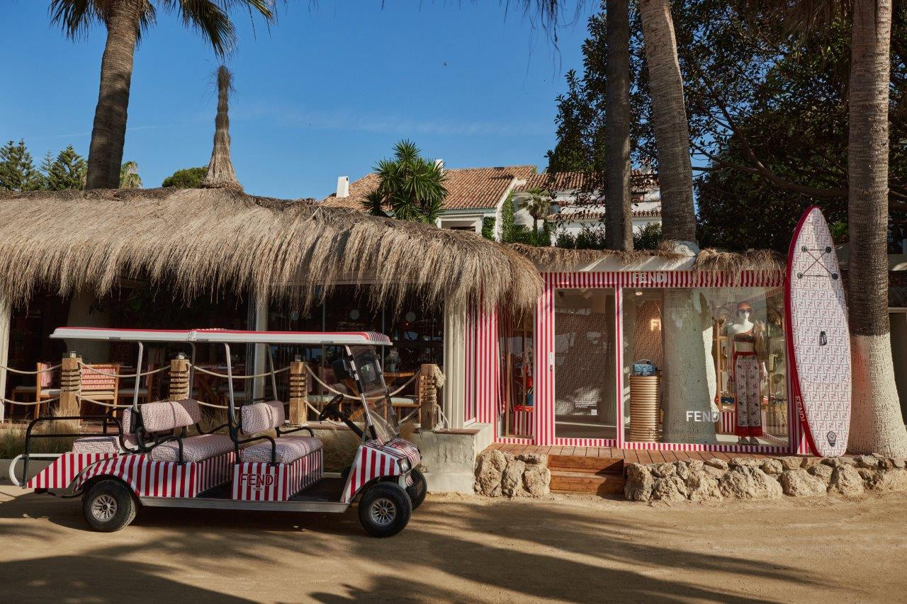 Ở bờ biển Tây Ban Nha, Fendi đã ra mắt pop-up store được thiết kế như bãi biển thu nhỏ đầu tiên trong lịch sử thương hiệu, tại Puente Romano Beach Resort ở Marbella. Với thiết kế nội thất lấy cảm hứng từ các cung hoàng đạo, giống như những bộ trang phục trong bộ sưu tập Astrology Summer Capsule Collection 2023 mới, họ cũng trưng bày những thiết kế này ngay trong khu vực pop-up này.
