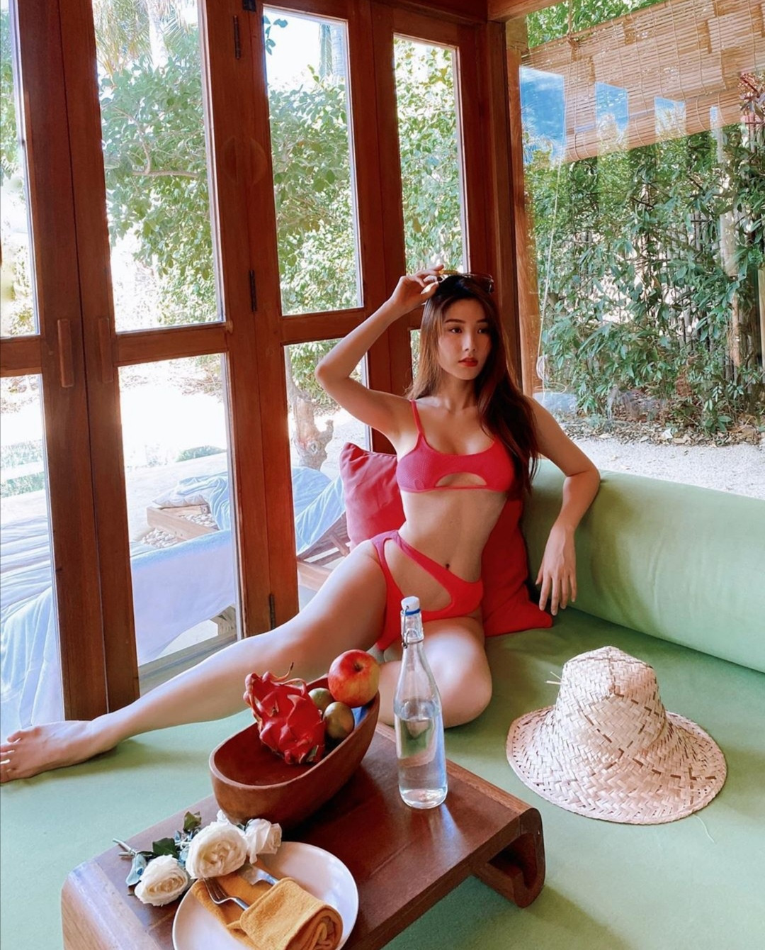 Diễm My 9x khoe dáng chuẩn với bikini hai mảnh cut-out hồng neon nổi bật.