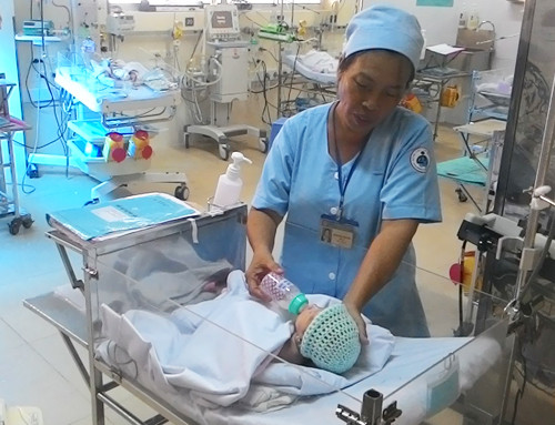 Đến nay, dù Huy đã có thể cười, bú khỏe và thở khí trời, song mỗi ngày vẫn có 18 bác sĩ và nhân viên y tế cận kề chăm sóc. "Thương lắm. Xót xa lắm. Mình cũng làm mẹ, nhìn cảnh bé chép miệng đòi bú mà không cầm được nước mắt. Không cần ai dặn dò, chúng tôi vẫn xem bé như người thân của mình. Nhìn thấy nó bú được, đi tiểu đi tiêu được, cực nhọc bao nhiêu cũng quên hết", nữ hộ lý Trần Thị Xuân Thu nói.