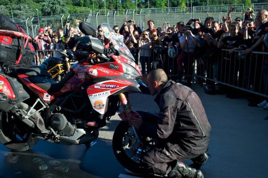 Hỗ trợ cho Pirozzi trong suốt chuyến đi ‘lịch sử’ này là đội ngũ chuyên viên hùng hậu tại nhà máy ở Bologna. Họ làm việc chuyên nghiệp, quan sát và theo suốt hành trình cúa Pirozzi. Từ Misano, anh đã đi qua Hy Lạp, Bulgaria, Romania, Bỉ, Đông Âu, Bắc Âu. Và tại bất kì nơi đâu, Pirozzi cũng nhận được sự đón tiếp nhiệt tình của các câu lạc bộ Ducati sở tại. Đặc biệt tại Moscow, những người cùng chung đam mê Ducati tại đây đã đồng hành cùng anh trong suốt ba tuần lạnh giá lại Siberia.