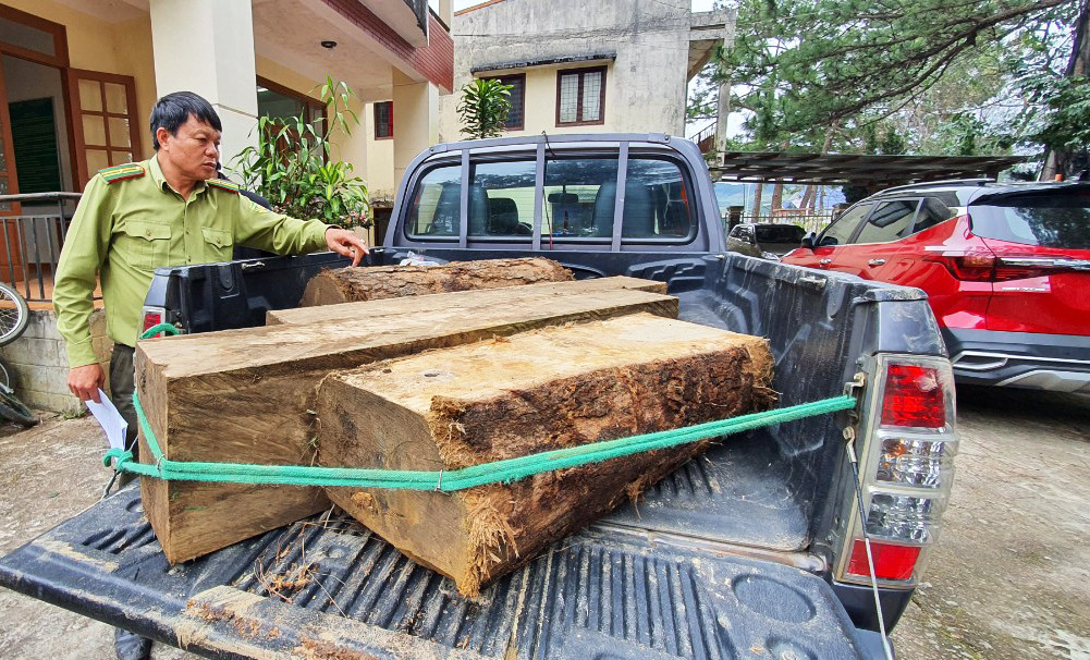 Theo Hạt Kiểm lâm huyện Lạc Dương, khoảng 4 giờ sáng 9/11, nhận được tin báo, đơn vị đã cử lực lượng đeo bám chiếc ô tô biển số 29N-3395 lưu thông trên đường Trường Sơn Đông theo hướng từ xã Đưng K’Nớ (huyện Lạc Dương) ra TP.Đà Lạt.