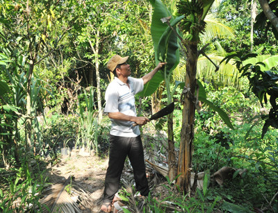 Với 3 công đất vườn, anh Nguyễn Văn Tác - cha Ánh Viên - trồng cây lâu năm như sầu riêng, cam...