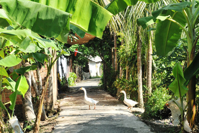 Con đường làng dẫn vào nhà Ánh Viên bình dị.