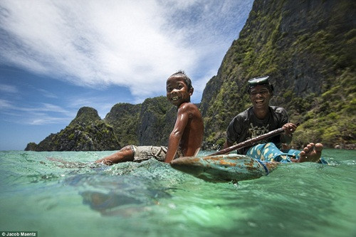 Những em bé người Tagbanua sớm quen với cuộc sống lênh đênh trên biển. Đây cũng là tộc người lâu đời nhất ở Philippines.