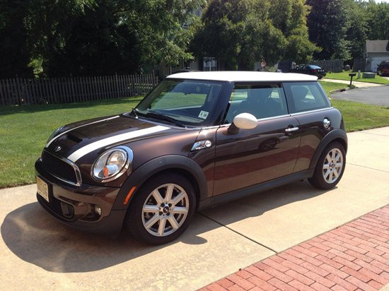 Ông xã Tây điển trai thường chở người đẹp đi lại bằng chiếc Chocolate Cooper kiểu dáng cổ điển này. Hoa hậu cũng có một chiếc Vespa riêng màu cam mới coóng để tự di chuyển khi cần thiết.