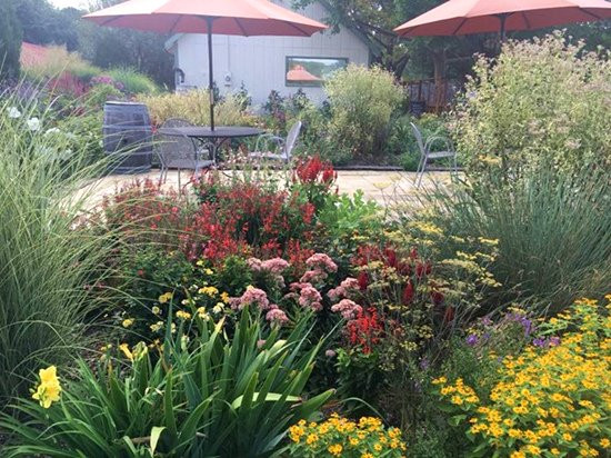 Phía sau trang trại là vườn hoa, tiếp giáp với đồi thoải, núi non cùng cảnh sắc thiên nhiên tuyệt vời của vùng này.