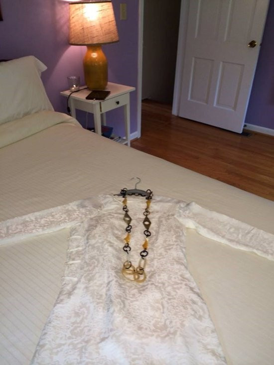Trong khi đó, phòng ngủ của hoa hậu Ngọc Khánh với vật dụng toàn trắng, tường sơn tím mộng mơ.
