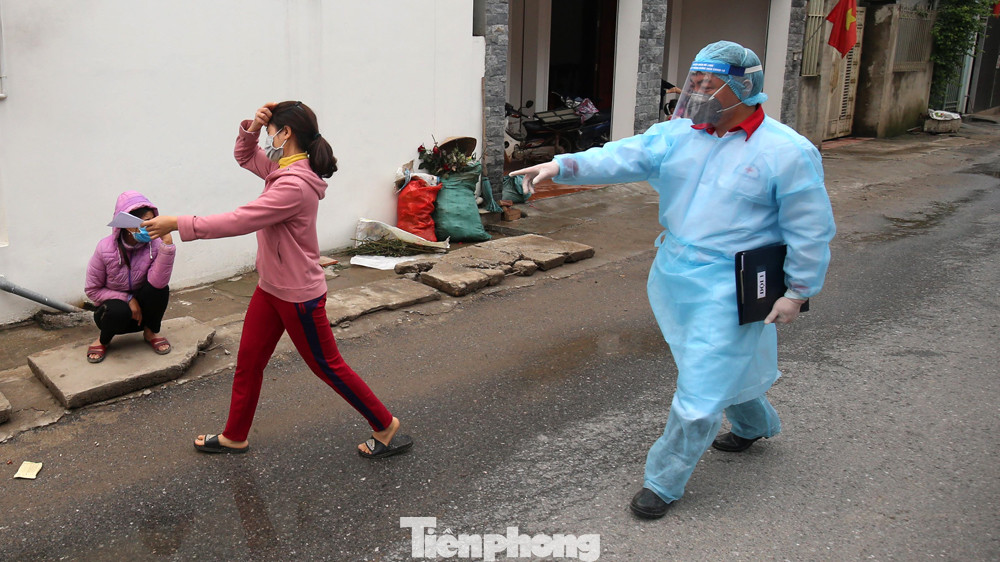 Nhân viên phòng dịch thường xuyên đi nhắc nhở người dân thôn Hạ lôi hạn chế ra ngoài đường