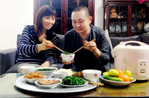 Bữa cơm ấm áp của hai vợ chồng Xuân Hinh