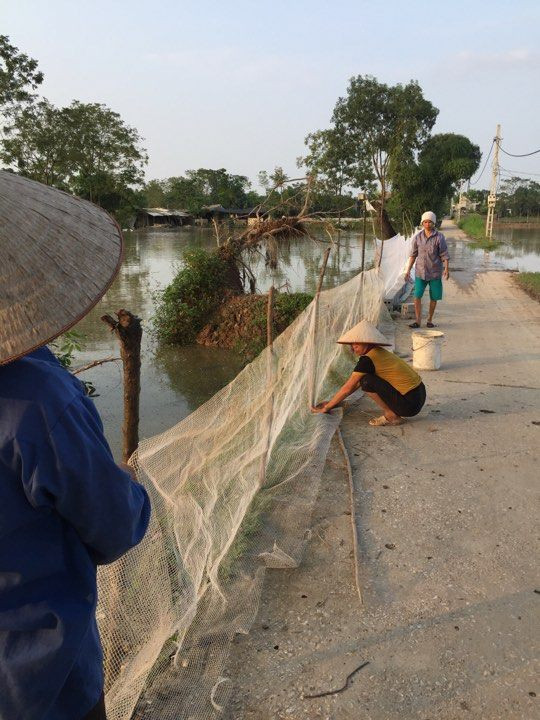 Thôn Giáp Bốn, Tuy Lai, cả nhà cả cửa dồn hết vào mấy cái ao, cá trắm, chép, trôi, nuôi 5,6 tháng chỉ còn 1 tuần nữa là thu hoạch. Chị Ba Hường ở thôn Giáp Bốn, tay vừa thoăn thoắt căng lưới, vừa rầu rầu giọng kể "chồng ốm đau nằm nhà, 4 đứa con bé đều đi học, bảo con ở nhà đi chống úng với mẹ mà nó ham đi học không ở, phải nhờ hàng xóm ra làm giúp. Từ 2008 đến giờ mới ngập lại 1 trận khủng khiếp thế này. Gần 60 triệu đổ vào ao cá, chưa trừ giống vốn, chưa kể công sức cả năm trời nuôi, chăm, giữ gìn mà giờ ông Trời không thương thì cũng chẳng biết phải làm sao"...
