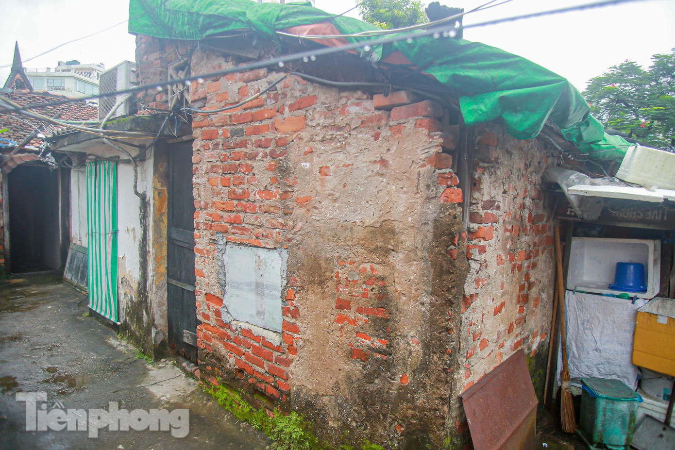 | Theo ghi nhận của PV, hiện biệt thự đang có khoảng 17 hộ dân đang sinh sống tại tầng 3 và phần mặt phố Phan Huy Chú, phố Hàn Thuyên. Khác với bề thế bên ngoài, biệt thự đang xuống cấp nguy hiểm, lụp xụp, có khả năng sụp đổ bất cứ lúc nào. |