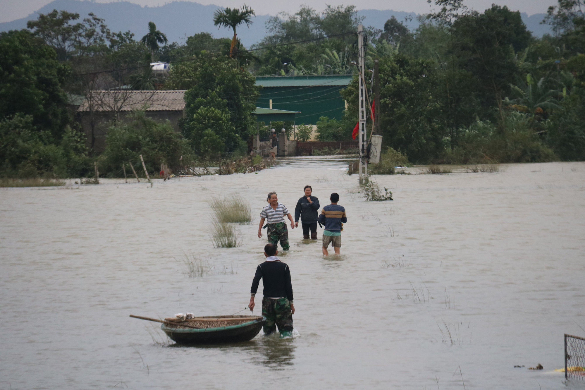 Nước ngập sâu, hôm nay đoàn cứu trợ mới có thể tiếp cận được tại thôn 4, xã Cẩm Duệ. Nơi được xem là một trong những vị trí nằm trong "tâm lũ".