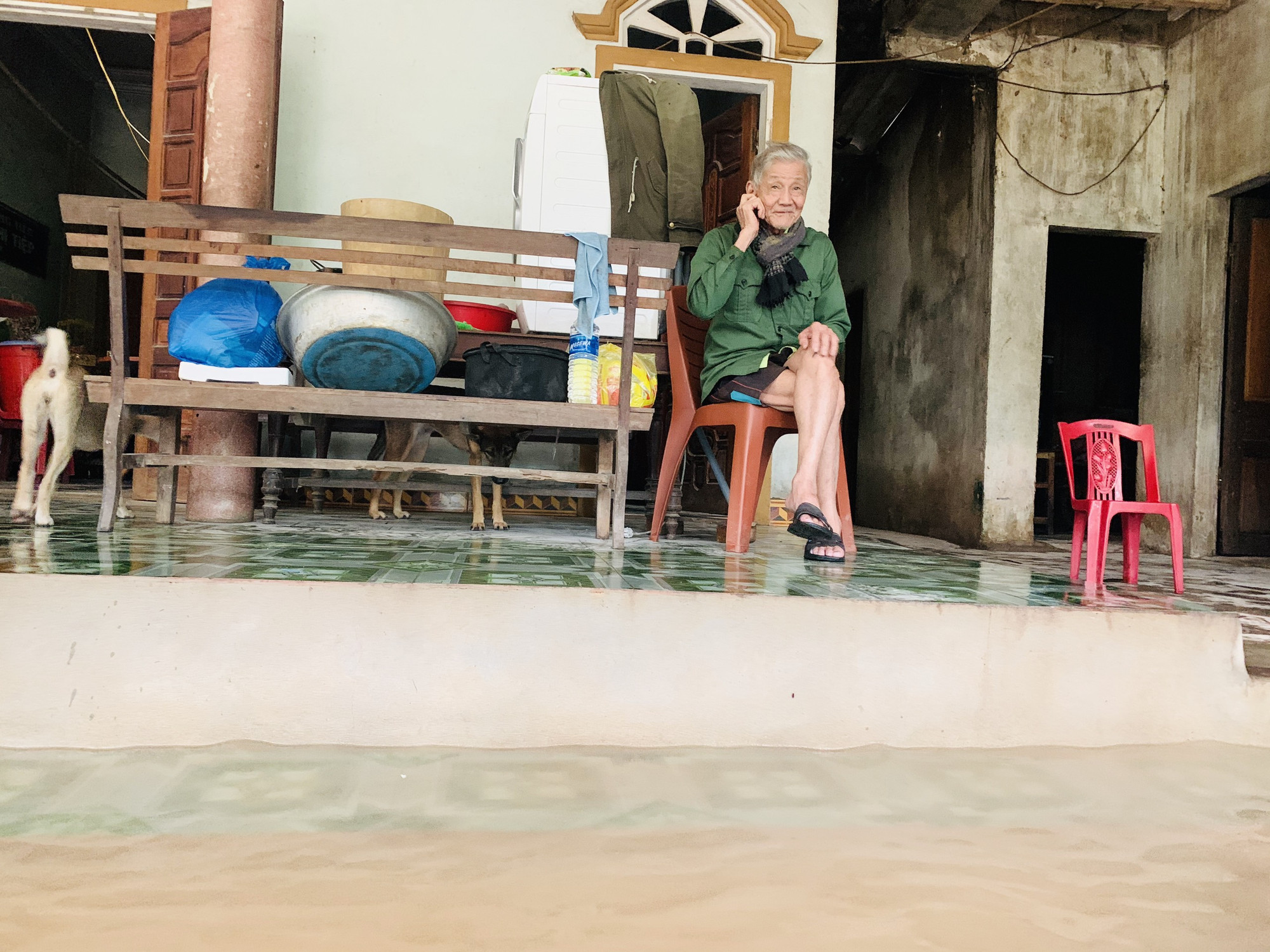 Ánh mắt thất thần, mệt mỏi hiện hữu sau nhiều đêm thức trắng. Trong đêm 18/10, dân làng hô hoán nhau di dời tài sản. Tôi thì một mình, già rồi không làm được gì. Chỉ trong mấy tiếng mà nước ngập hết. Giờ chẳng còn gì nữa rồi, đau lòng lắm”, ông Bùi Quang Thiều (88 tuổi, trú thôn 4, xã Cẩm Duệ) nghẹn ngào.