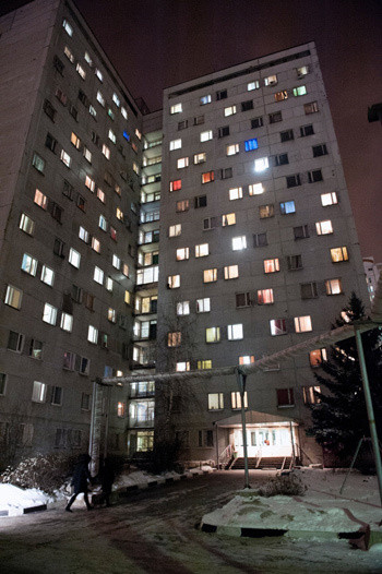 Ngồi trên bậc cầu thang, Andrei, sinh viên Học viện Nghệ thuật Moscow, châm tẩu thuốc và nói: "Tầng 12 là nơi lý tưởng để hút thuốc".