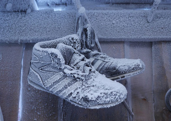 Ngôi nhà bị bao phủ bởi băng tuyết lạnh giá. Nhiệt độ thấp nhất từng ghi nhận được ở Yakutsk là -64,4 độ C và cao nhất là 38,4 độ C