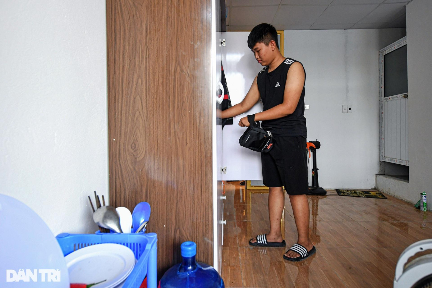 | Cùng phòng với Chiến, Phùng Khánh Duy, 19 tuổi, cho biết tổng chi phí mỗi tháng (bao gồm tiền điện, nước) của 4 thành viên khoảng 3,5-3,7 triệu đồng, tính ra mỗi người chưa đến một triệu đồng. Mỗi ngày Duy đi xe máy đến trường cách nhà trọ 3km, ít xe cộ nên không bị tắc đường. "Cuộc sống thoải mái, bình yên, không khí trong lành. Mỗi chiều tối, chúng tôi vô tư xuống đường tập thể dục", Duy cho hay. |