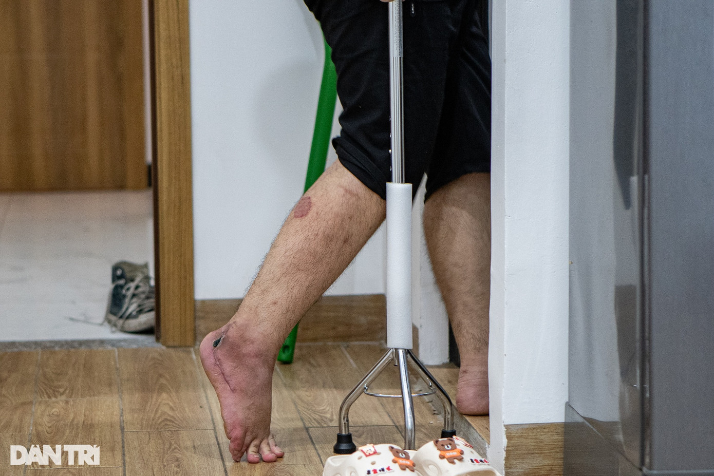 Chàng trai 17 tuổi kể những ngày đầu tập đi, sức nặng từ cơ thể dồn xuống vùng xương chậu, bàn chân chấn thương khiến em đau đớn bật khóc.