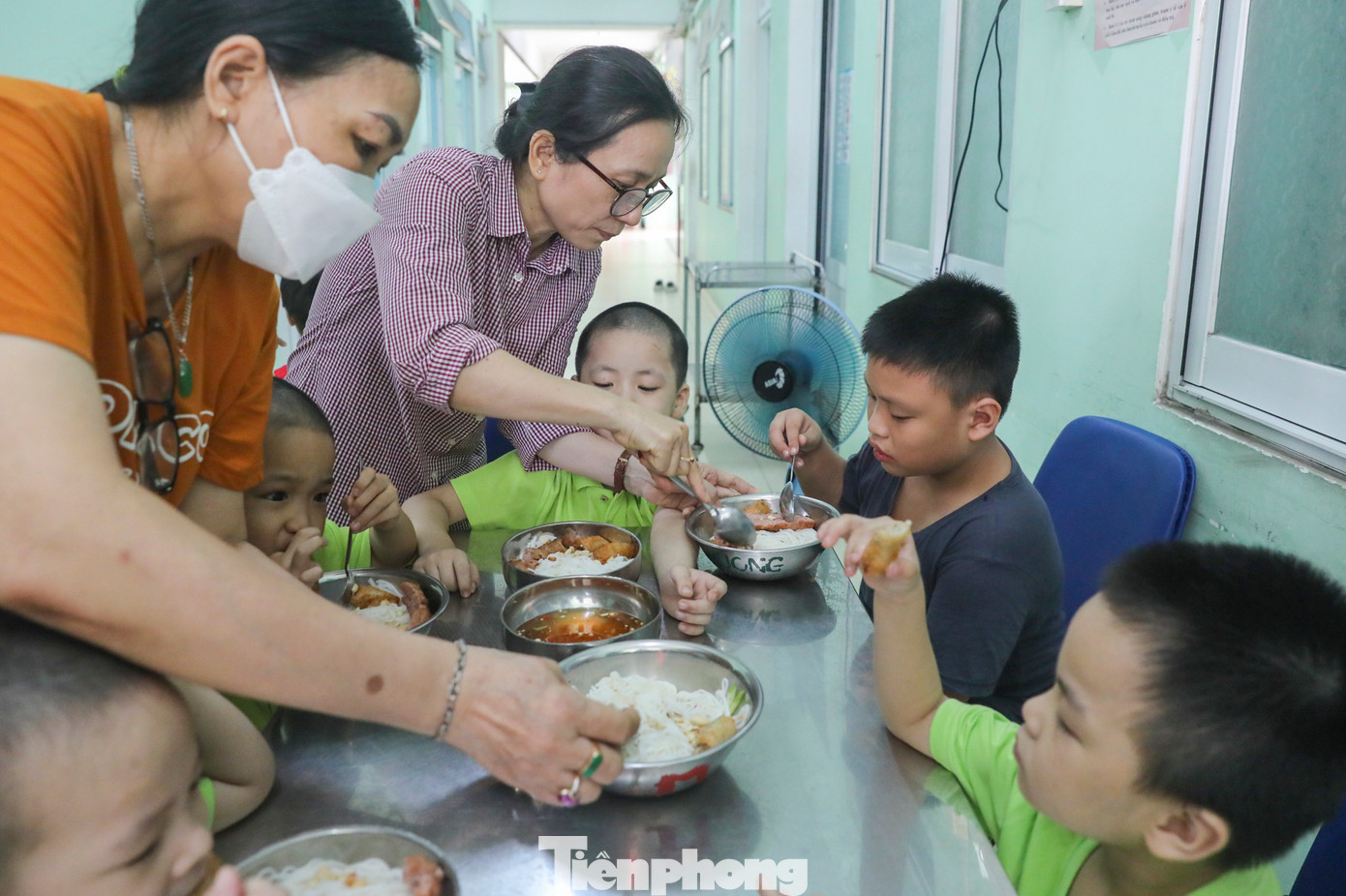 | Không phải trong ca làm việc, nhưng bảo mẫu Lê Thị Bảo (54 tuổi) trong tối 4/9 cũng được gọi tới tăng cường hỗ trợ chăm sóc các bé. Đây cũng là một đêm không ngủ với người chăm trẻ đã làm việc hơn 12 năm tại Trung tâm Bảo trợ trẻ em Tam Bình. Lúc xe vừa dừng để các cháu bước xuống, nhiều trẻ hoảng loạn, mệt mỏi. Các cô phải ôm vào lòng an ủi, sau đó đút ăn một ít cháo, cho uống sữa rồi tắm rửa và ru ngủ. |