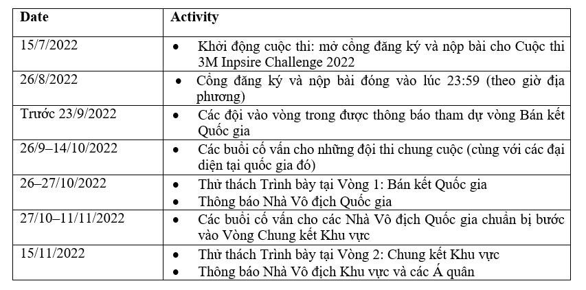 Các mốc thời gian của cuộc thi