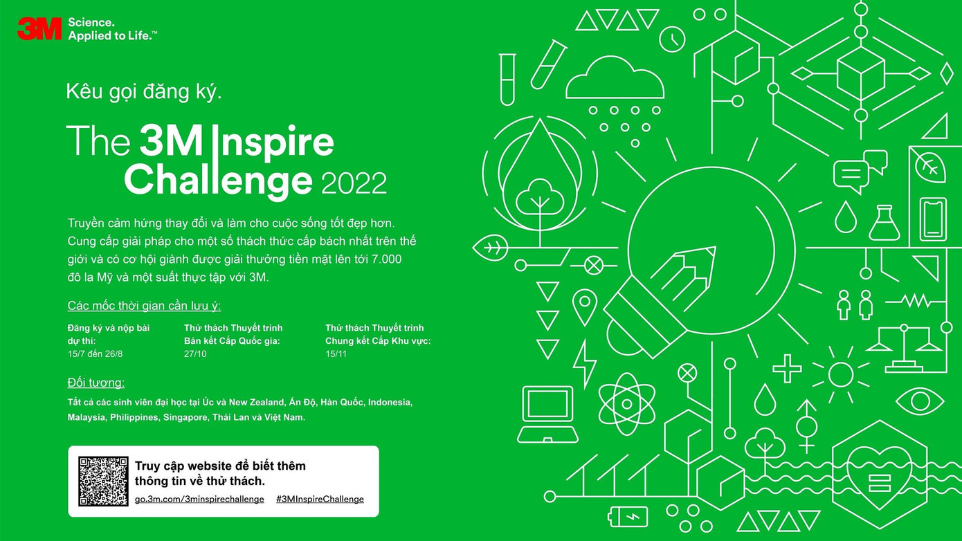 Công ty Khoa học Toàn cầu 3M đã chính thức khởi động mùa thứ hai của cuộc thi giải quyết tình huống mang tên 3M Inspire Challenge. Từng được tổ chức tại các quốc gia Đông Nam Á, năm nay cuộc thi chào đón các sinh viên chưa tốt nghiệp (không giới hạn chuyên ngành và trình độ học tập) tại 10 quốc gia ở khu vực Châu Á - Thái Bình Dương bao gồm Úc, New Zealand, Ấn Độ, Hàn Quốc, Indonesia, Malaysia, Philippines, Singapore, Thái Lan và Việt Nam.