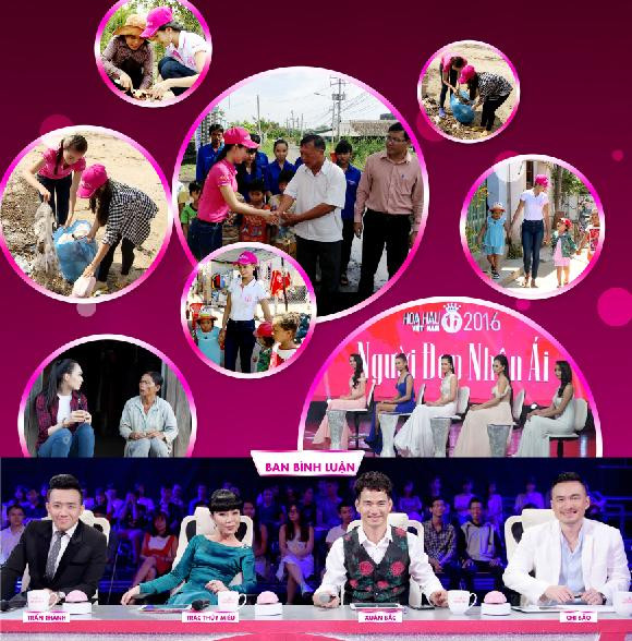 Và với Cuộc thi Hoa hậu Việt Nam 2016, độ “nóng” tăng cao không chỉ bởi những hình ảnh trình diễn bikini qua những đêm thi chung kết khu vực mà bằng những hình ảnh chứa đựng nhiều cảm xúc, ý nghĩa nhân văn qua những dự án “Người đẹp nhân ái” của 36 thí sinh vòng chung kết toàn quốc được ghi hình và phát sóng trên VTV9 như một chương trình truyền hình thực tế.