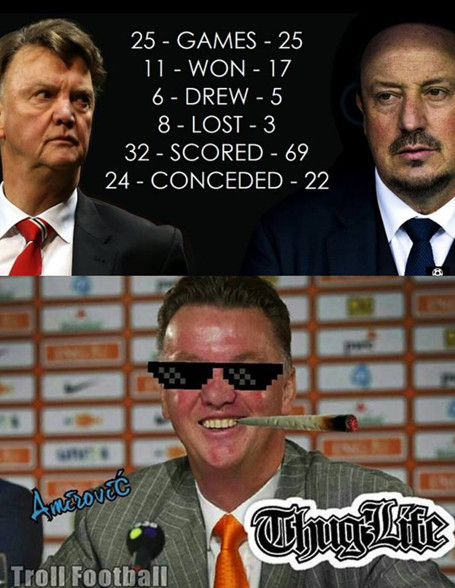 Van Gaal "may mắn" vẫn chưa bị sa thải dù thành tích kém Rafa Benitez