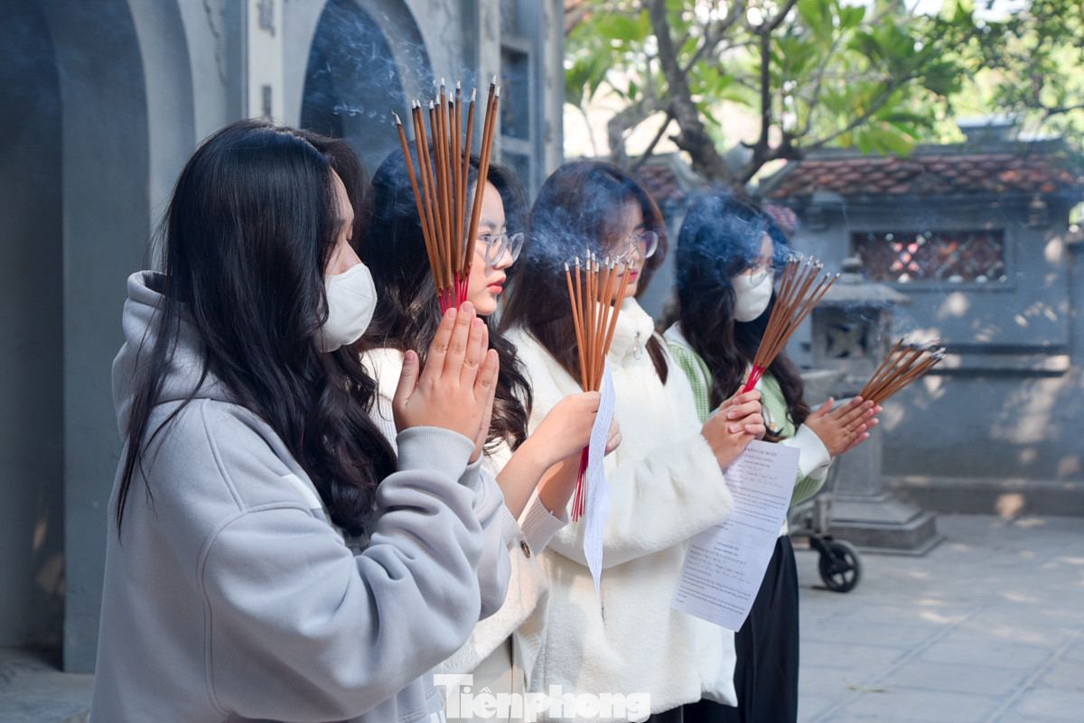 | Những ngày cuối năm 2023, tại Chùa Hà (quận Cầu Giấy, Hà Nội) có nhiều bạn trẻ đến dâng hương, xin sớ, lễ bái để cầu tài lộc, bình an và quan trọng hơn cả là cầu tình duyên. |
