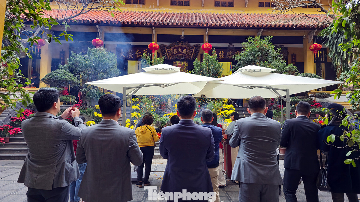 TPO - Việc đi lễ chùa xin lộc đầu năm từ lâu đã trở thành một nét văn hóa truyền thống rất đẹp không thiếu trong đời sống văn hóa tinh thần của người Việt trong mỗi dịp Tết đến xuân về. Nhiều người sinh sống tại thủ đô đã tranh thủ cuối giờ làm việc ngày đi làm chính thức đầu xuân để đi lễ chùa.