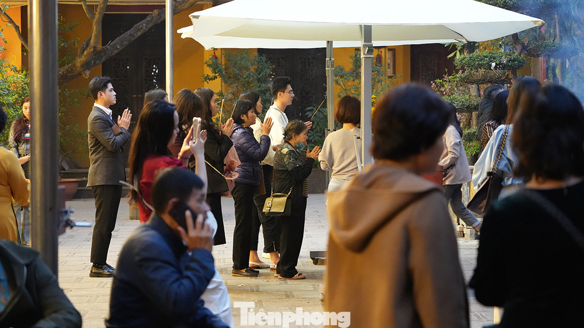 | Ngày hôm nay 15/2 (tức 6 Tết Giáp Thìn), rất nhiều người sống và làm việc tại thủ đô đã tranh thủ cuối ngày làm việc đi lễ chùa đầu năm mới. Hình ảnh tại Chùa Quán Sứ thời điểm 18h. |