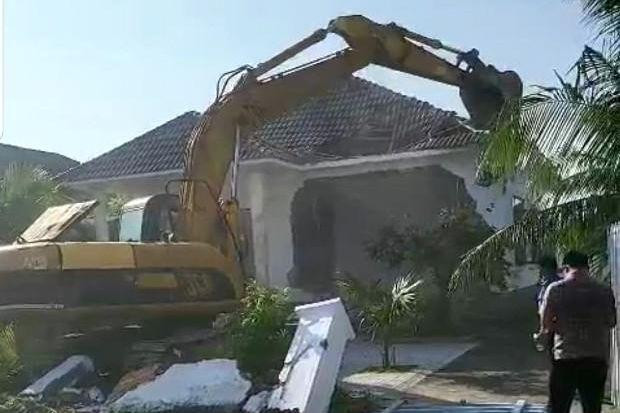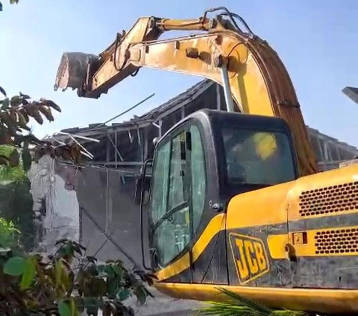 | Lực lượng chức năng đang tháo dỡ 2/79 căn biệt thự trái phép. |