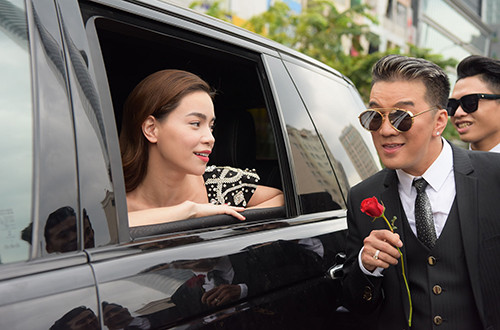 Hồ Ngọc Hà cũng có mặt tại phố đi bộ trên một chiếc xe khác. Cô cùng chồng cũ đều là khách mời trong MV của Đàm Vĩnh Hưng.