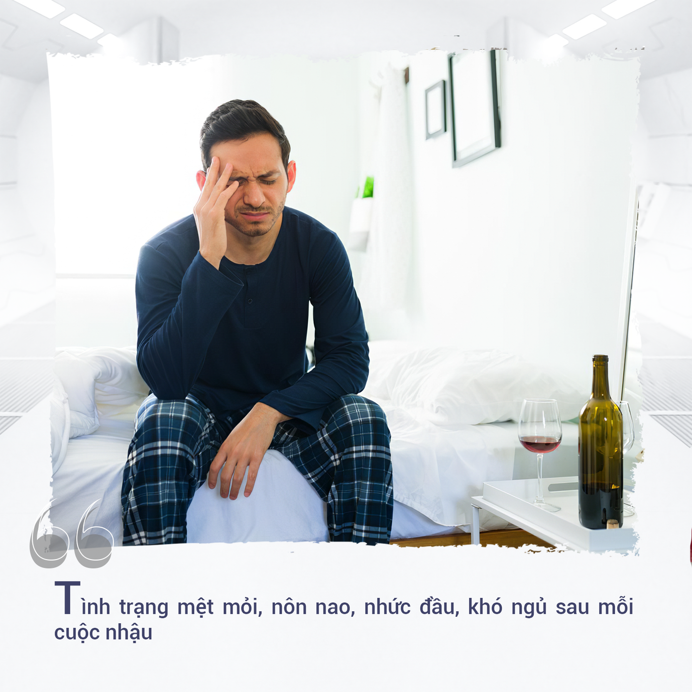 Nếu tốc độ và nồng độ rượu bia uống vào vượt quá khả năng xử lý, gan sẽ không kịp sản xuất ALDH và Glutathione để chuyển hoá hết sẽ biến chất ethanol có trong rượu bia thành một chất rất độc là Acetaldehyde. Lúc đó, Acetaldehyde ứ đọng, tích tụ trong cơ thể sẽ gây ra hàng loạt triệu chứng nhiễm độc cấp. Biểu hiện thường thấy nhất là ảnh hưởng lên não, gây triệu chứng “say rượu” như: chóng mặt, nhức đầu, khó ngủ, rối loạn hành vi, tâm thần, mất kiểm soát, bủn rủn chân tay…