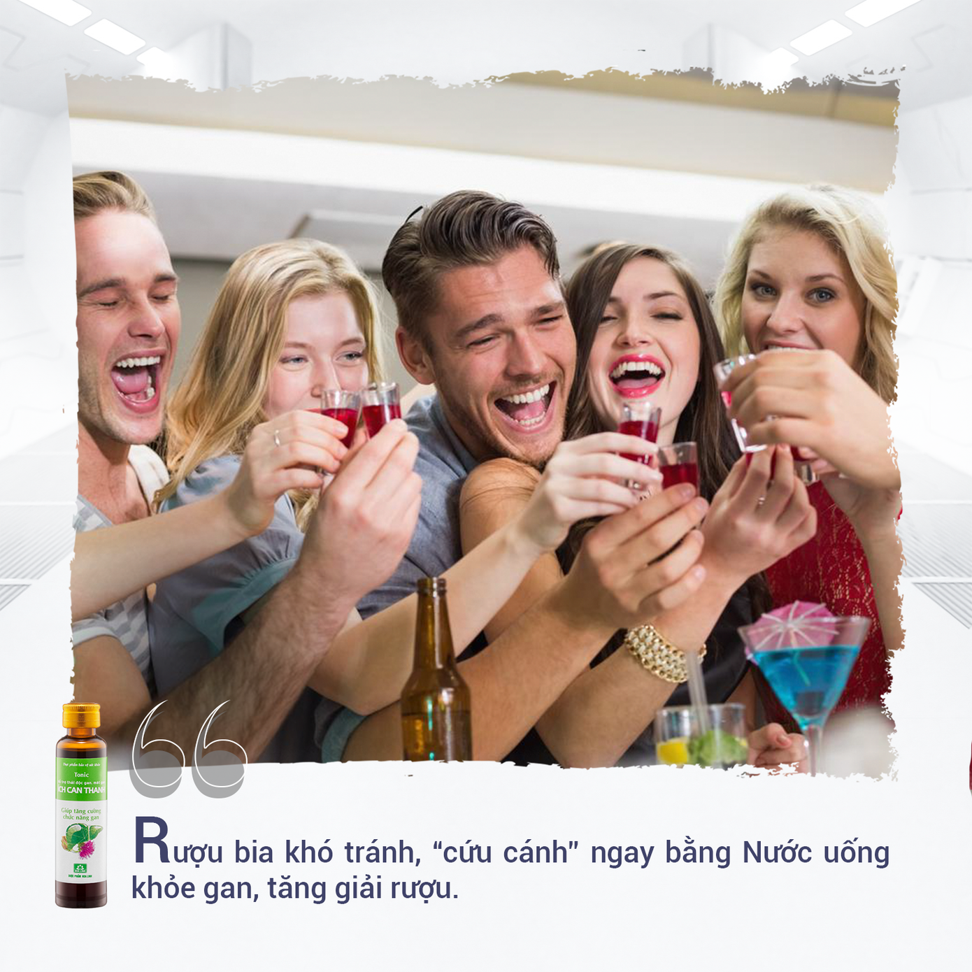 Khi không thể “né tránh” được rượu bia, nam giới có thể nhờ tới sự trợ giúp của Ích Can Thanh bằng việc uống ngay 1 lọ (20ml) trước hoặc sau khi uống rượu giúp “Khỏe gan, tăng giải rượu”: hỗ trợ giảm mệt mỏi, tăng tỉnh táo, giảm các triệu chứng “say rượu” như hoa mắt, chóng mặt, nhức đầu, mất kiểm soát… Đồng thời, người dùng Ích Can Thanh cũng yên tâm hơn vì gan được bảo vệ, hỗ trợ thải độc tốt, giảm nguy cơ gây tổn thương và các bệnh lý về gan do rượu.