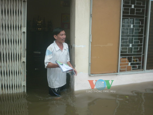 Cùng tình cảnh với ông Chiến là bà Trương Thị Ba ( 71 tuổi, ngụ B8-31A, quốc lộ 50, xã Bình Hưng, huyện Bình Chánh, Tp.HCM), nhà của bà cũng ngập sâu trong nước, nhiều đồ bị hư hỏng hỏng do không kịp chuyển ra ngoài.