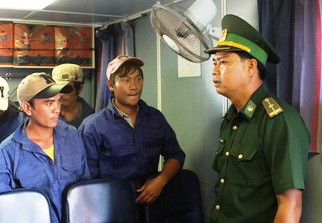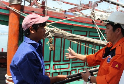 Cán bộ Danang MRCC, Đồn Biên phòng 252 (Sơn Trà, Đà Nẵng)... trực tiếp xuống tàu thăm hỏi, động viên ngư dân, biểu dương tinh thần cứu hộ tàu SAR 274.