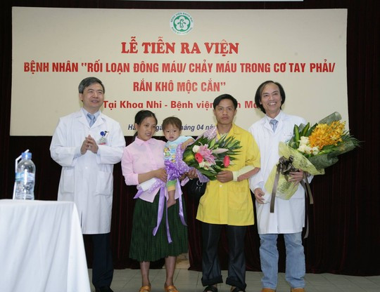 Sáng nay 14/4, Bệnh viện (BV) Bạch Mai (Hà Nội) tổ chức lễ ra viện cho bệnh nhi Vừ Mí Chá (2 tuổi, bé trai người dân tộc Mông, tỉnh Cao Bằng) bị rắn độc cắn thương tâm gây rối loạn đông máu, khả năng tử vong cao. Sau 10 ngày tích cực điều trị bằng những phương thuốc tốt nhất, bệnh nhi đã được cứu sống và hoàn toàn khỏe mạnh trở về với gia đình.