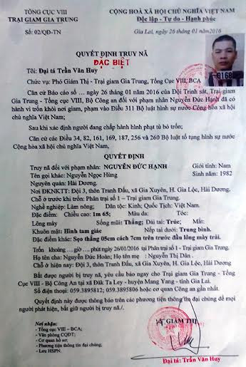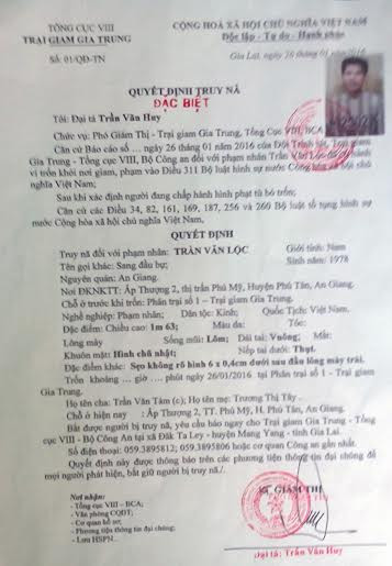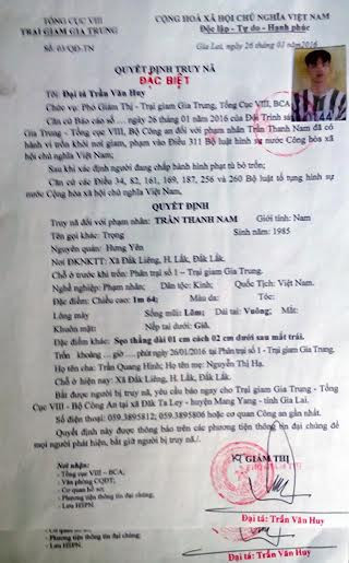 Ảnh lệnh truy nã các đối tượng vượt ngục.