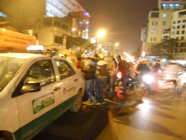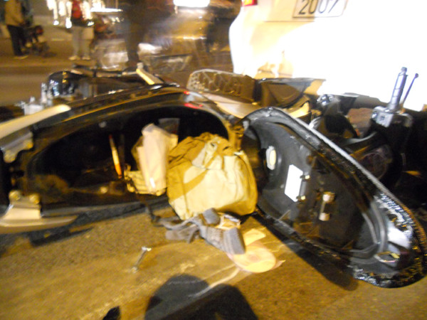 Chiếc xe máy do một thanh niên điêu khiển mang BKS:30N9-2777, đến khu vực đèn đỏ Trần Nhân Tông ra đường Lê Duẩn (Hà Nội) thi đâm vào chiếc taxi BKS 30H-2007.