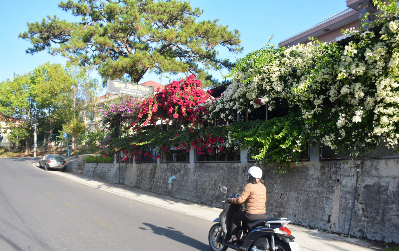 TP Đà Lạt là xứ sở của muôn hoa nhưng loài hoa giấy với cánh hoa mỏng manh như trang giấy học trò, có nguồn gốc từ xứ sở nhiệt đới vẫn có nét đẹp riêng, không hề trộn lẫn. Người đi đường như bị níu chân, dừng lại check in với hàng hoa giấy tuyệt đẹp trên phố Thi Sách, phường 6.