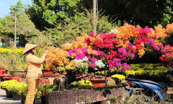 “Hoa giấy có nhiều cành nên trông sum suê, hoa bung nở thành từng chùm lớn, màu sắc tươi sáng với nhiều màu khác nhau như trắng, tím, đỏ hồng, vàng, cam… tượng trưng cho sự đủ đầy, hạnh phúc vẹn tròn, phát tài phát lộc. Ngoài ra, theo quan niệm dân gian thì hoa giấy có tác dụng xua đuổi tà ma, ngăn chặn điềm xấu”, cô Kim Liên (ngụ phường 6) chia sẻ.